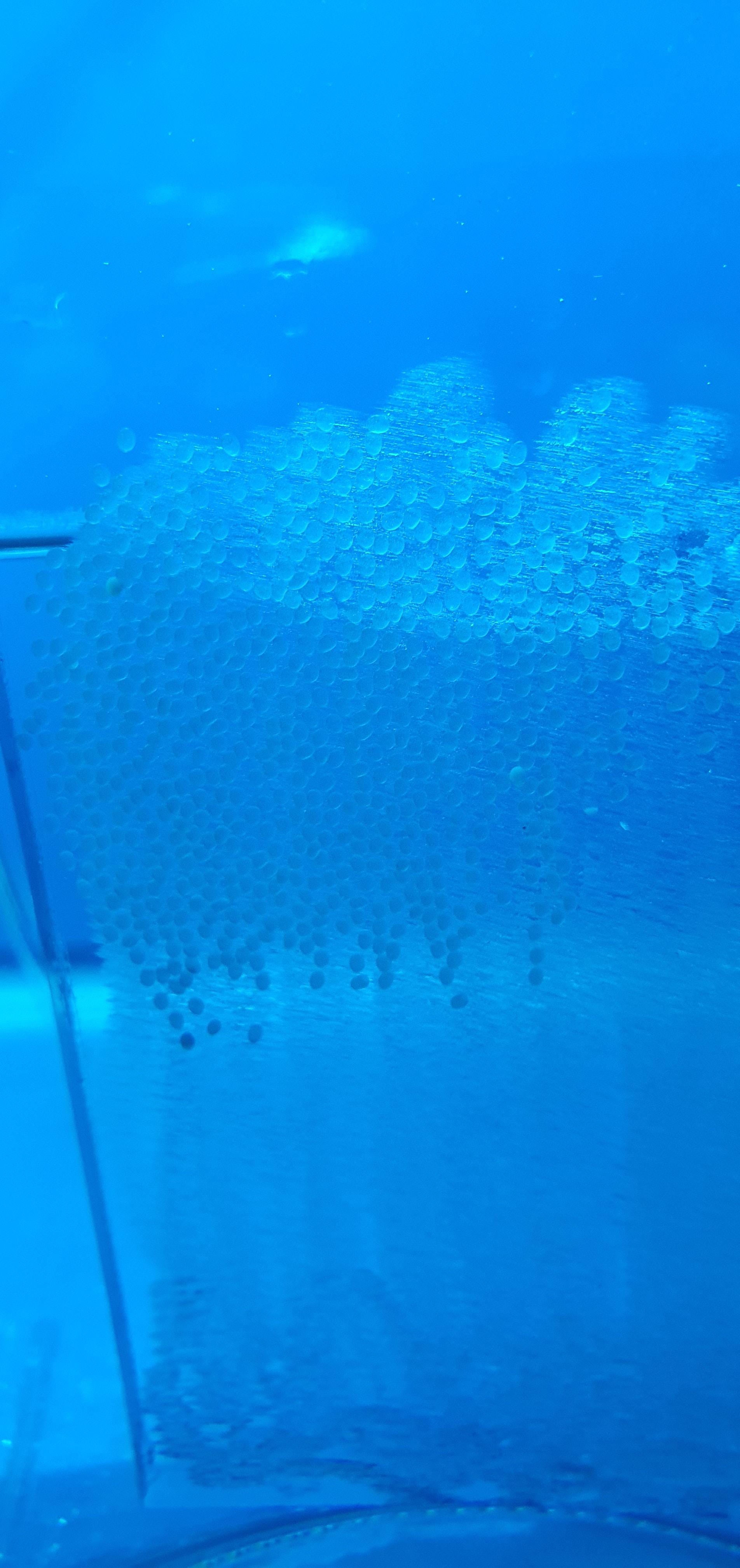 - Luego, los peces depositan sus huevos en una superficie plana, como una hoja o una piedra.